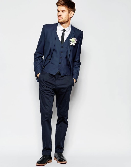 Prix Abordable Costumes Asos Gilet Pour Mariage Bleu Marine Bleu
