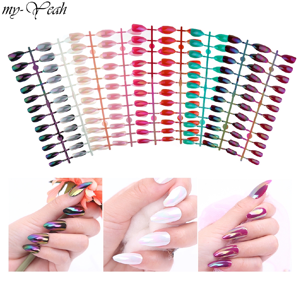 24pcs Laser Drop Shaped False Acrylic Nail Art Extension Full