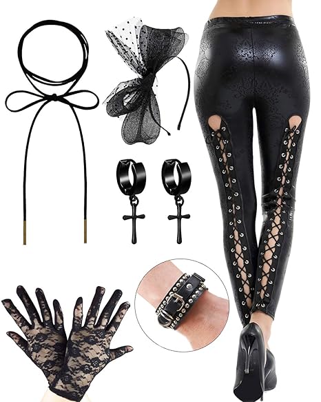 Amazon Com Women 80s Pop Diva Lace Leggings Costume