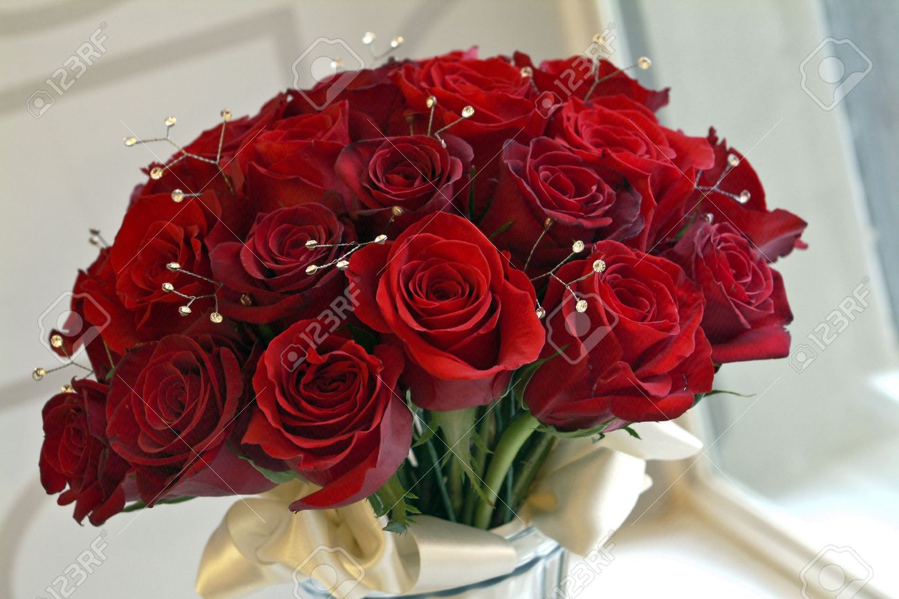 Bright Red Rose Bouquet Tied With White Ribbon Villasiena