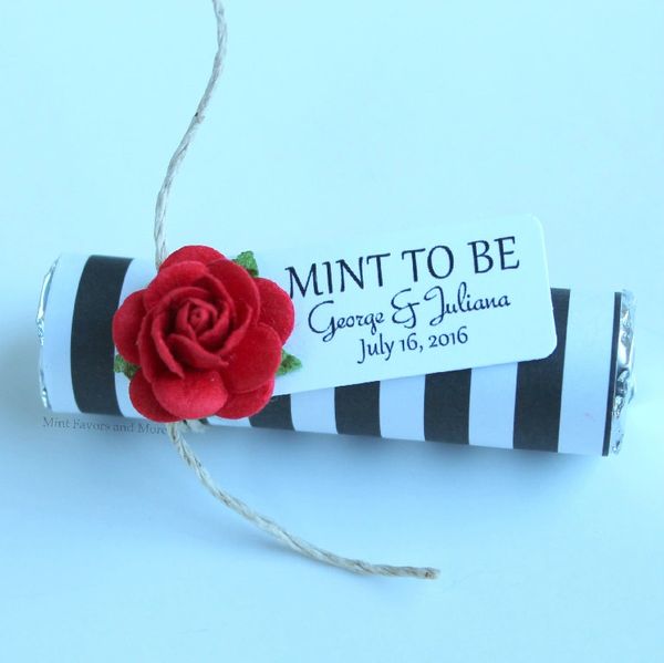 Black And White Stripe Wedding Favor With Red Rose